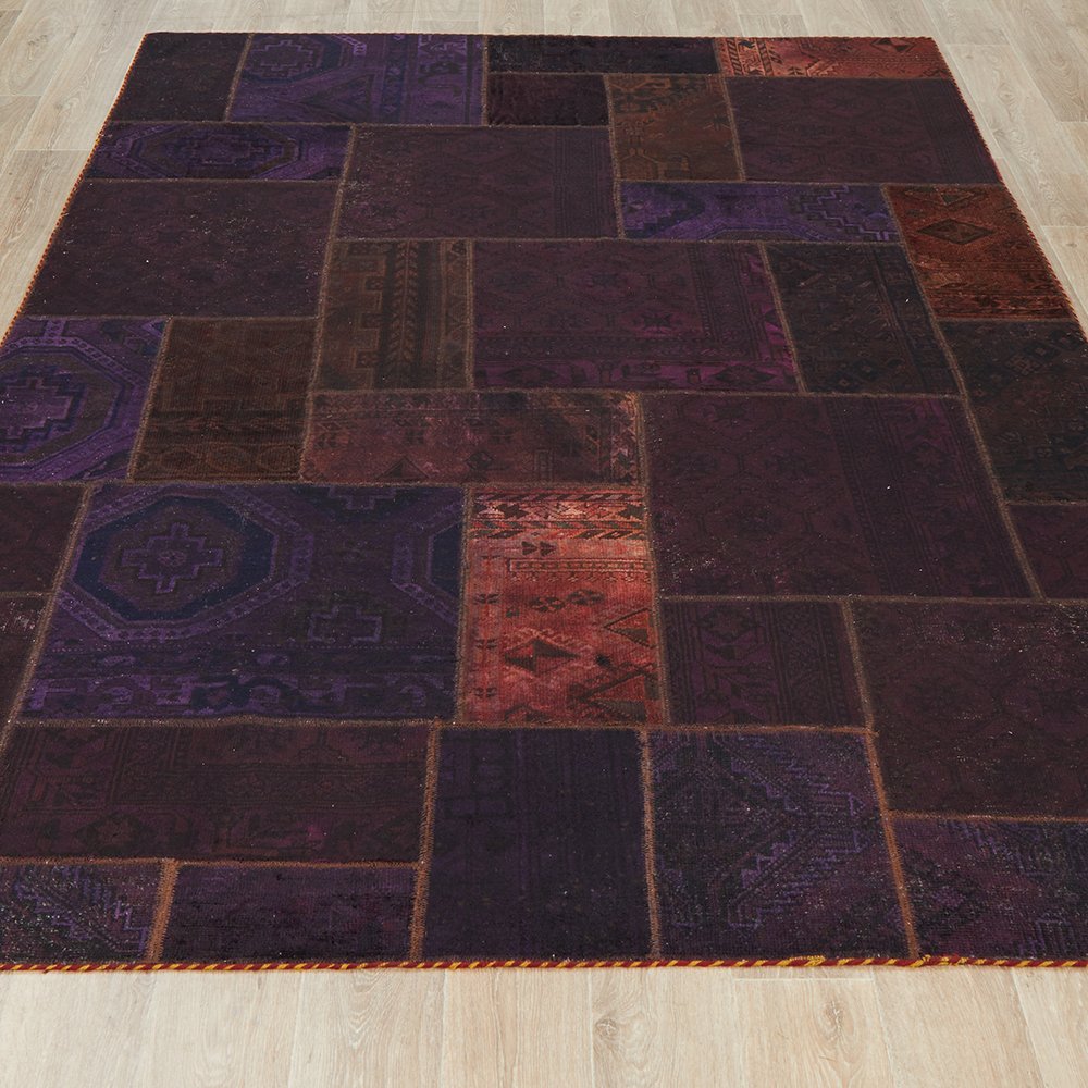 Aladdin Rugs NZ  overdyed vintage patchwork rugs sew together cultures, traditions and history, creating beautifully unique area rugs. We select vintage Persian  hand-knotted rugs woven in the 60's and 70's to create our collection of over-dyed patchwork rugs. We wash the colors, trim the piles, but care to keep the original patterns still alive. We then overdye them with a new color of choice, cut them into smaller pieces and hand sew the fragments together with a sturdy yarn. We back the patchwork rug with buckram and a cotton cloth that strengthens the rug. The rearrangement of the fragments transforms the ancient craft of rug making into unique artwork suited for contemporary settings at home or in offices.