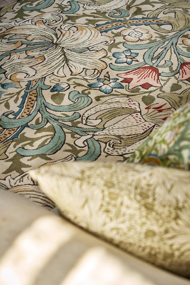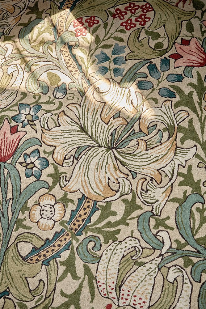 Lillies, acanthus leaves, and swathes of flowers unfurl and bloom in this historic 1899 design by John Henry Dearle. One of the greatest legacies of Morris & Co, this hand-tufted rug design comes in soothing tones of greens, teals, and pink. Crafted in India, this beautiful rug features a cosy 17mm pile.