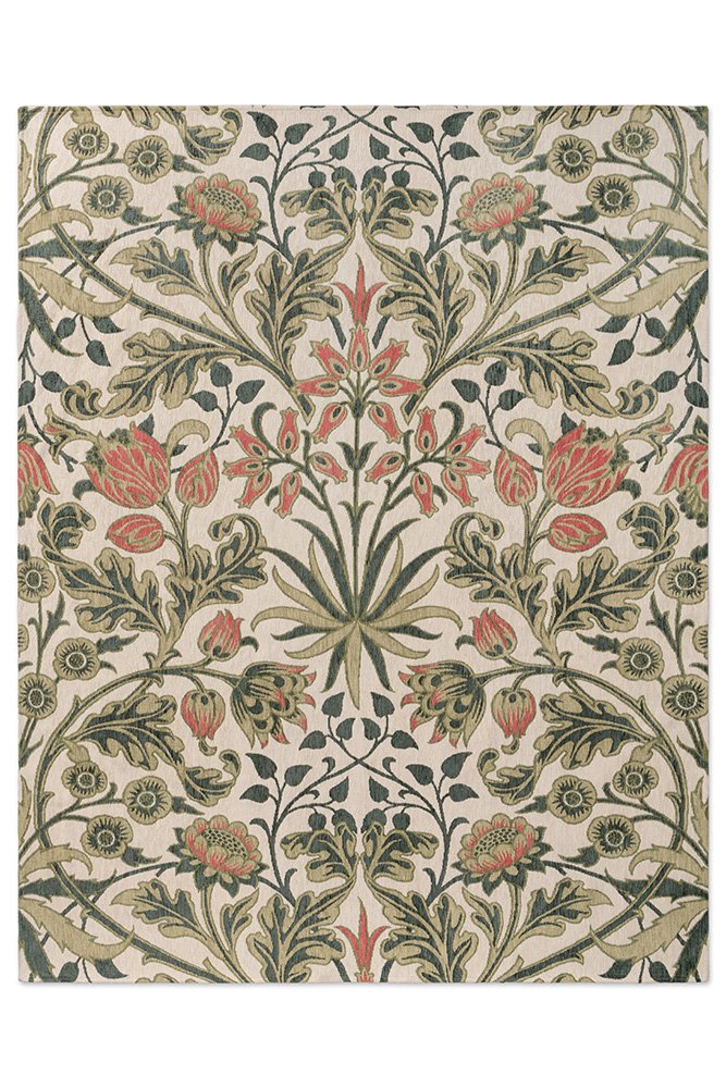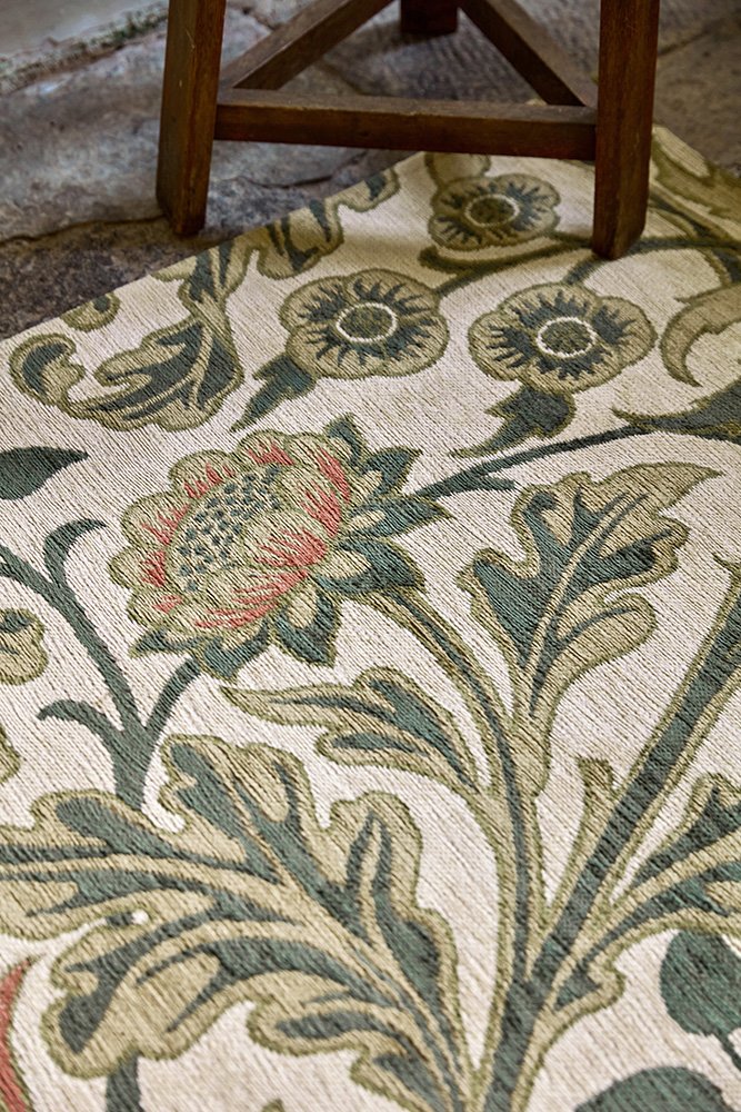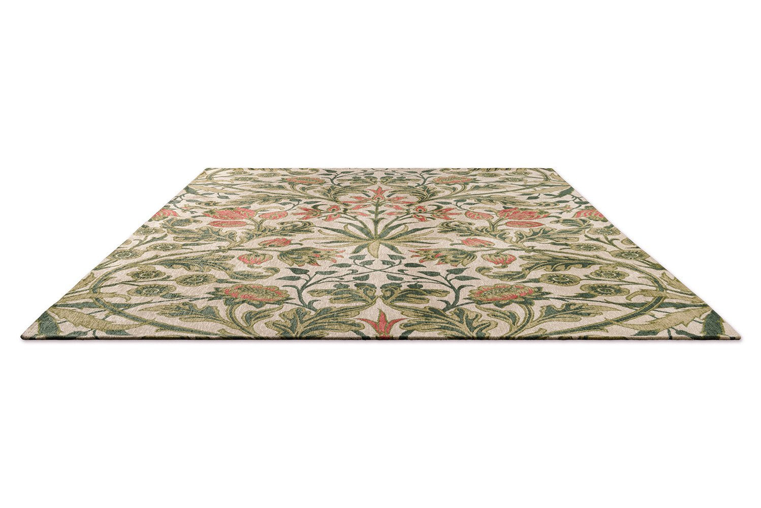 A joyful parade of plants and blooms curl and twist through this charming 1911 design by John Henry Dearle. Reimagined as a jacquard weave rug in a palette of natural tones, its like stepping into an English garden underfoot. Jacquard woven in the Benelux with a 70% PET, 30% wool blend, this rug features a low 3mm pile for practicality