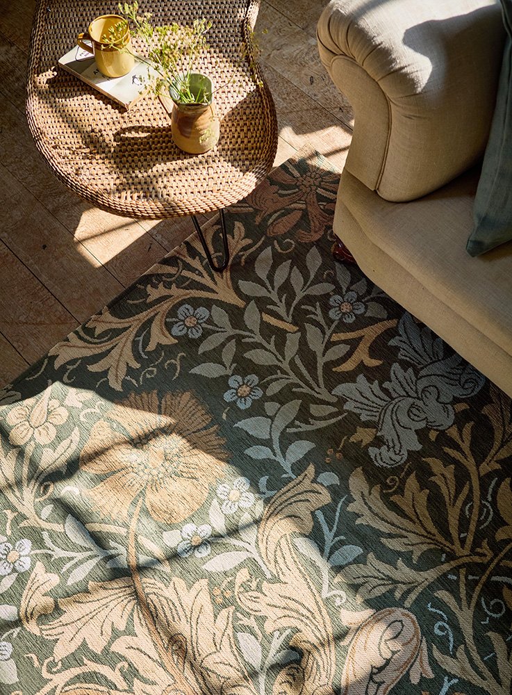 Originally designed in 1895 by John Henry Dearle for Compton Hall, this pattern of blooms and leaves arranged along a diagonal axis is beautifully reimagined here as a jacquard-woven rug. Jacquard woven in the Benelux with a 70% PET, 30% wool blend, this rug features a low 3 mm pile for practicality.