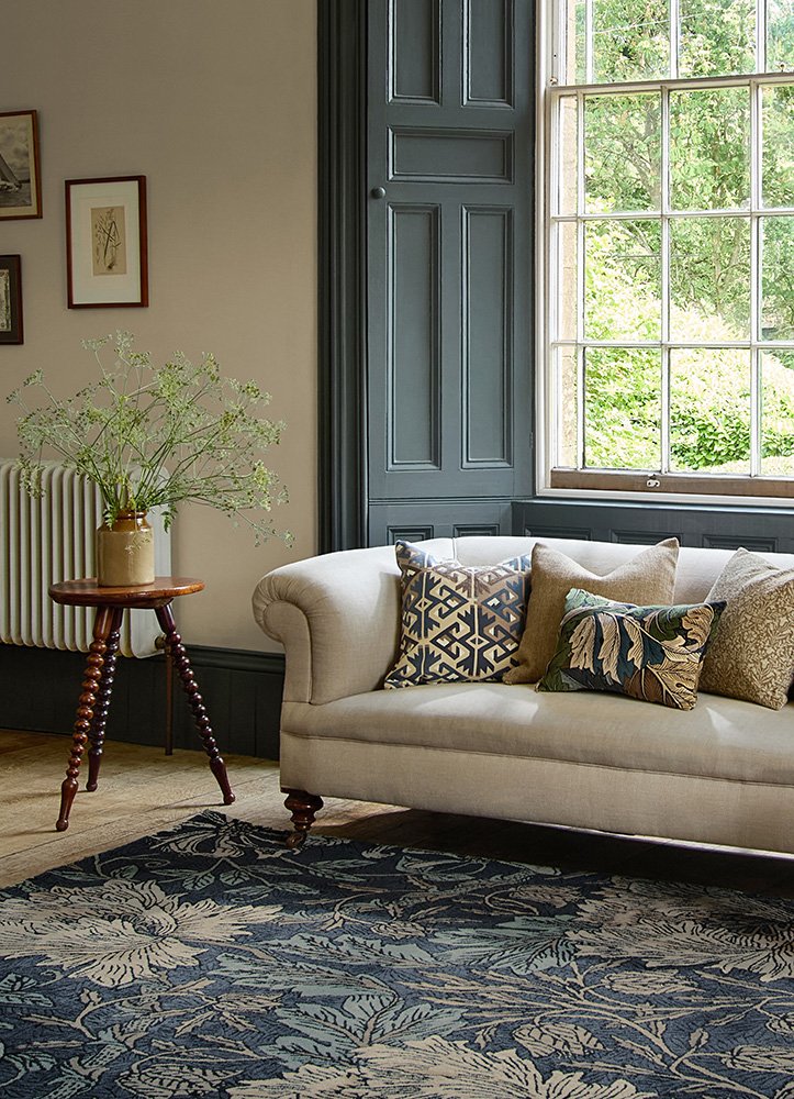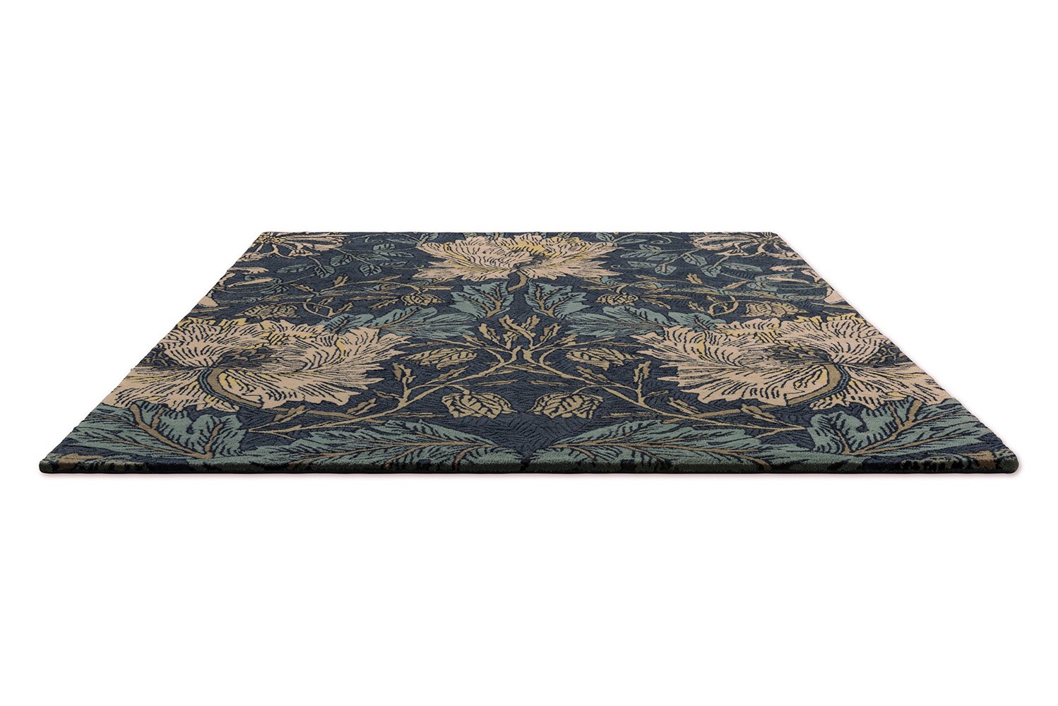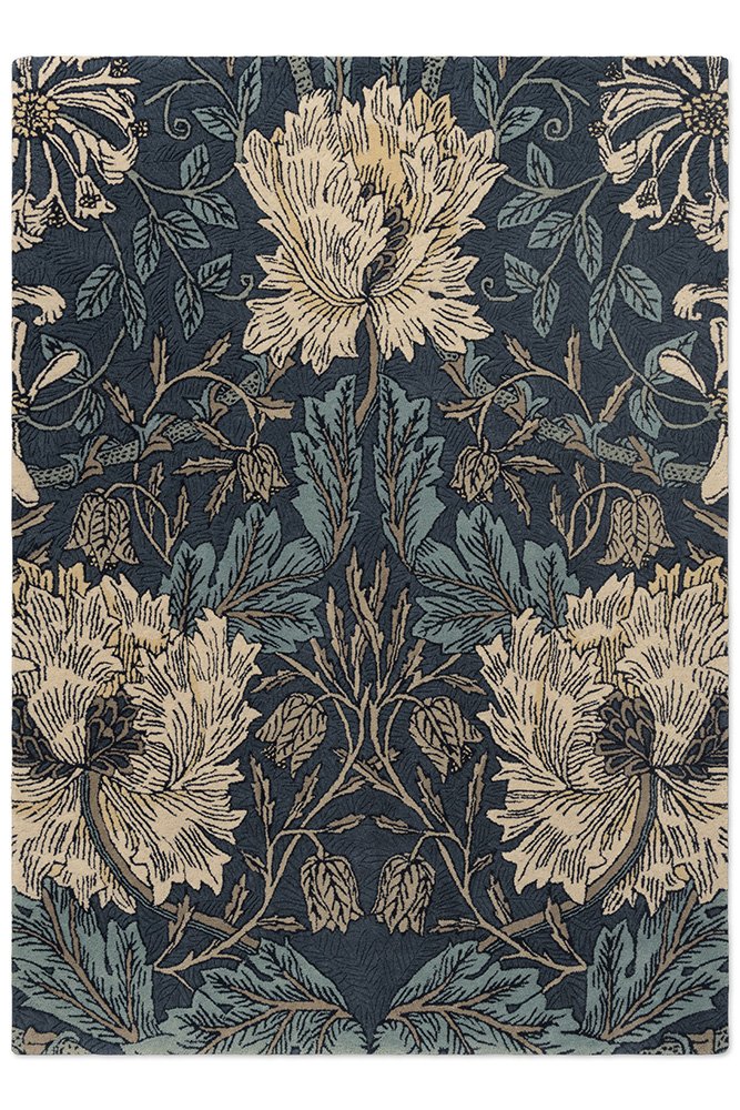 Perennially popular for evoking natures swerves and swirls, Honeysuckle & Tulip is a joyful design by William Morris made in 1876 for Morris & Co, beautifully reimagined as a hand-tufted rug with dark blue and thyme highlights. Crafted in India from 100% pure new wool, this rug features a substantial 17mm pile