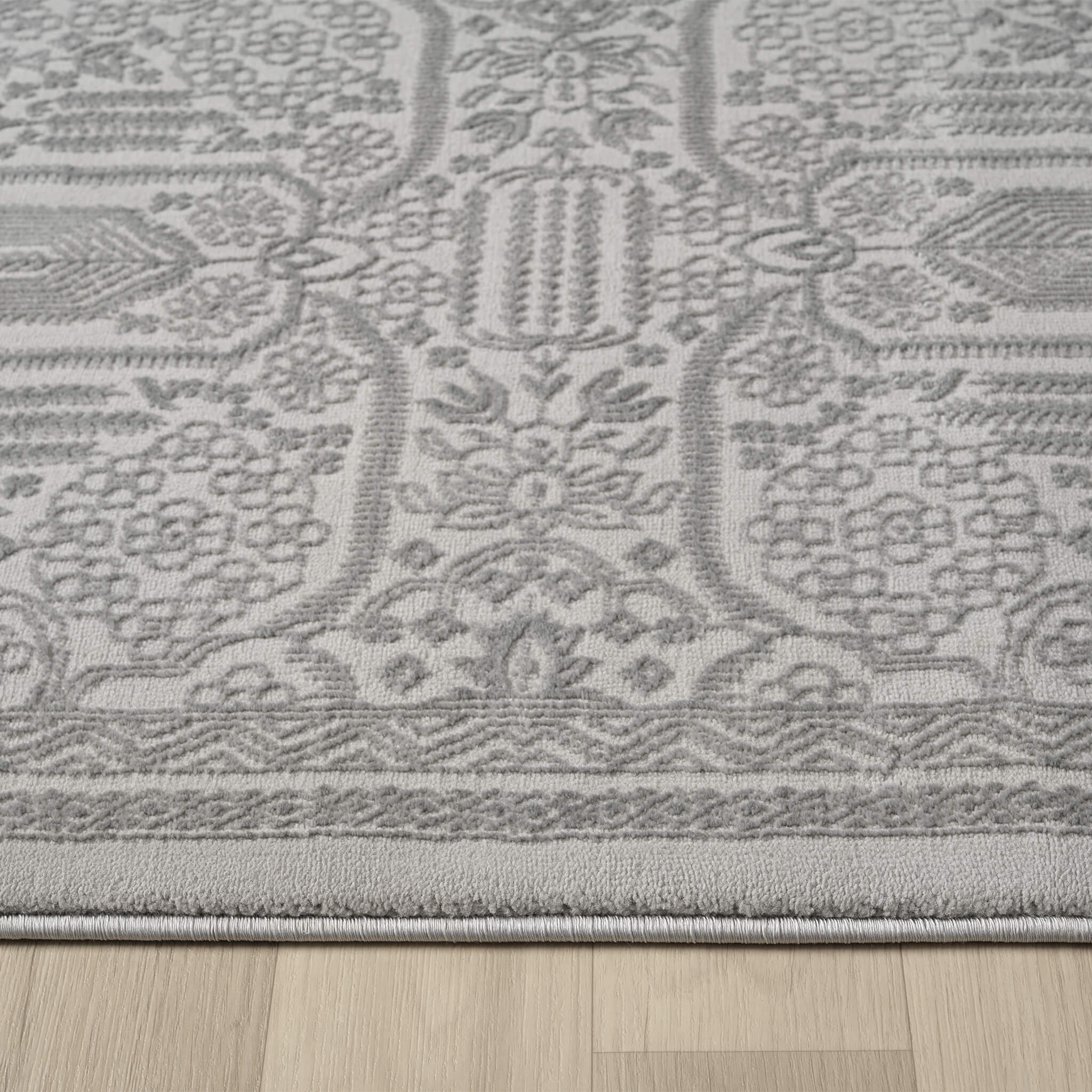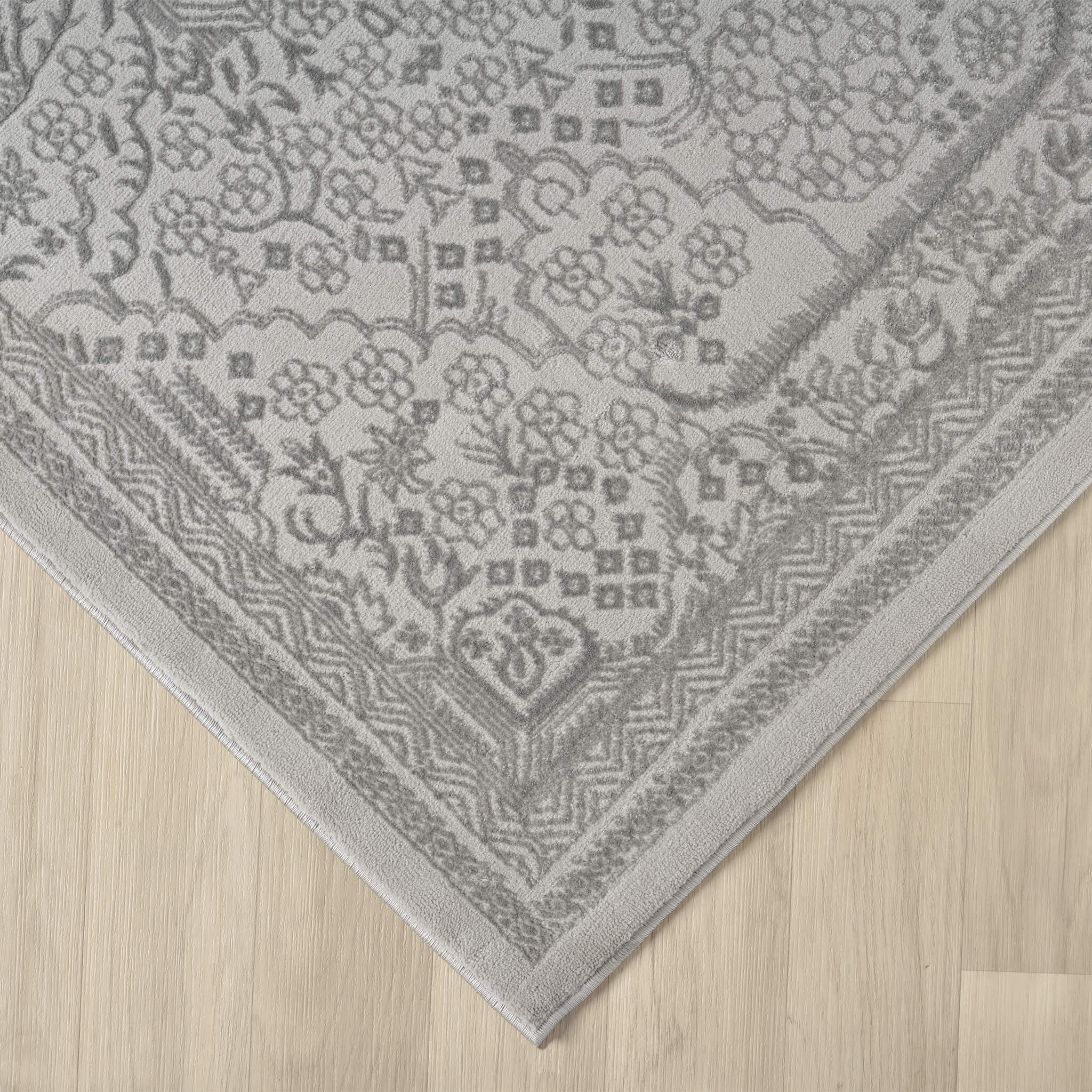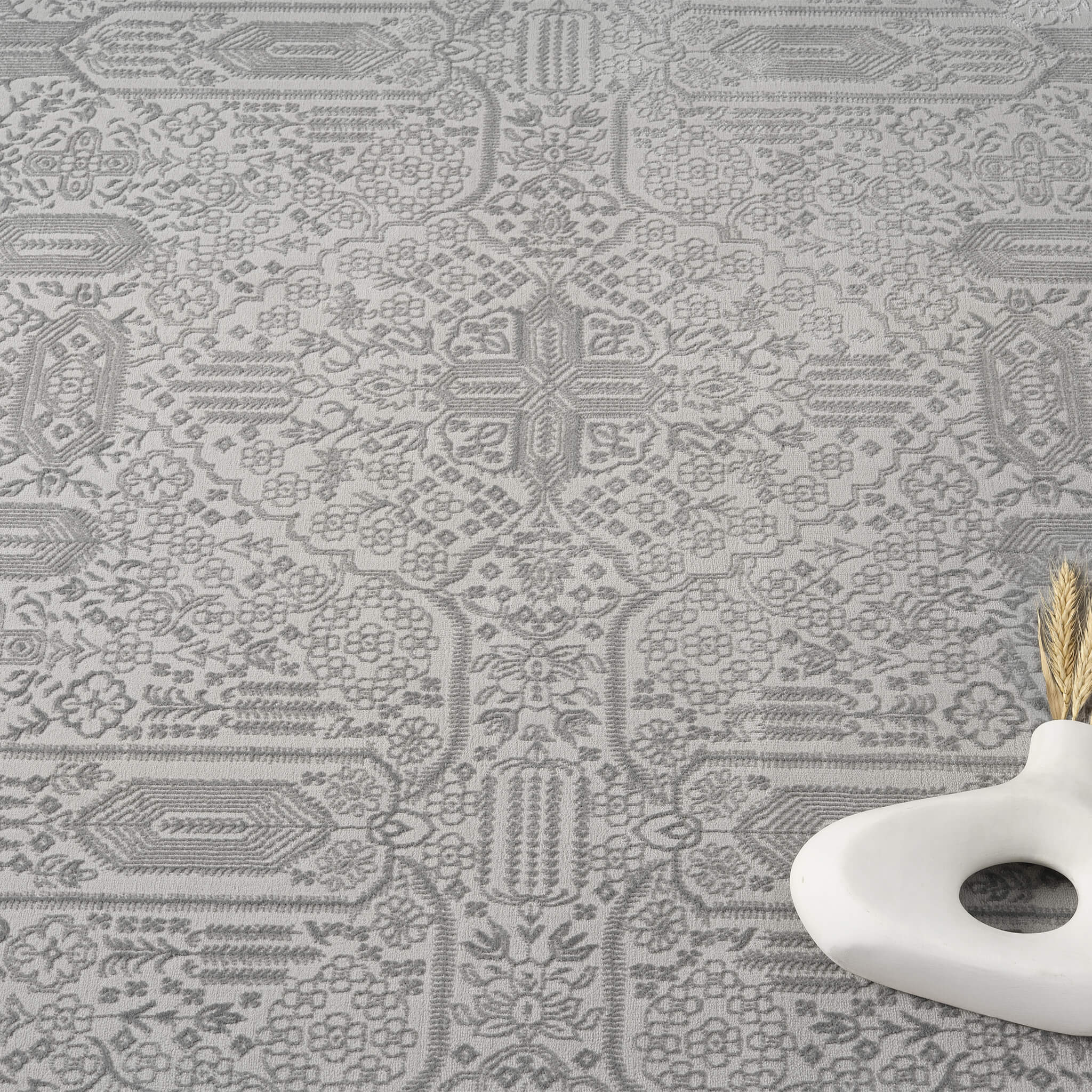 This serene collection, with its muted tones and patterns, brings harmony and luxury to your floors while being restful for the eyes. The highly decorative and beautifully textured pile is made from polyester and polypropylene, power-loomed into a soft cotton base and finished with quality all-side binding. This collection complements most interior colour schemes with ease, and has shed-resistant and anti-static properties for easy maintenance.